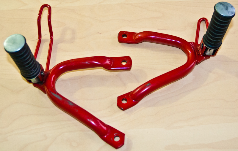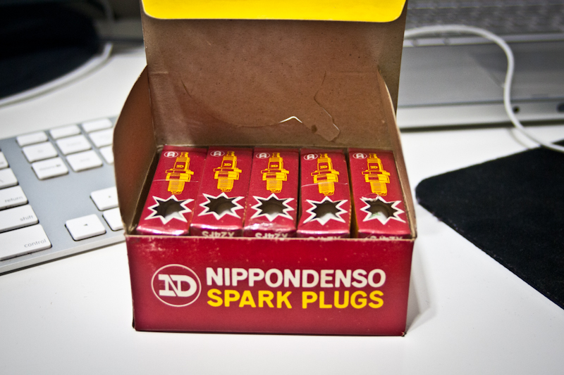 I got some cool foot pegs from a sport bike. I looked at all the expansion chambers, and I got a cool old box of spark plugs. I cross referenced them to NGK but they seem to be for touring bikes, but they still make a cool coffe table item. I also got a Disc Wheel. Ill Slap it all together.