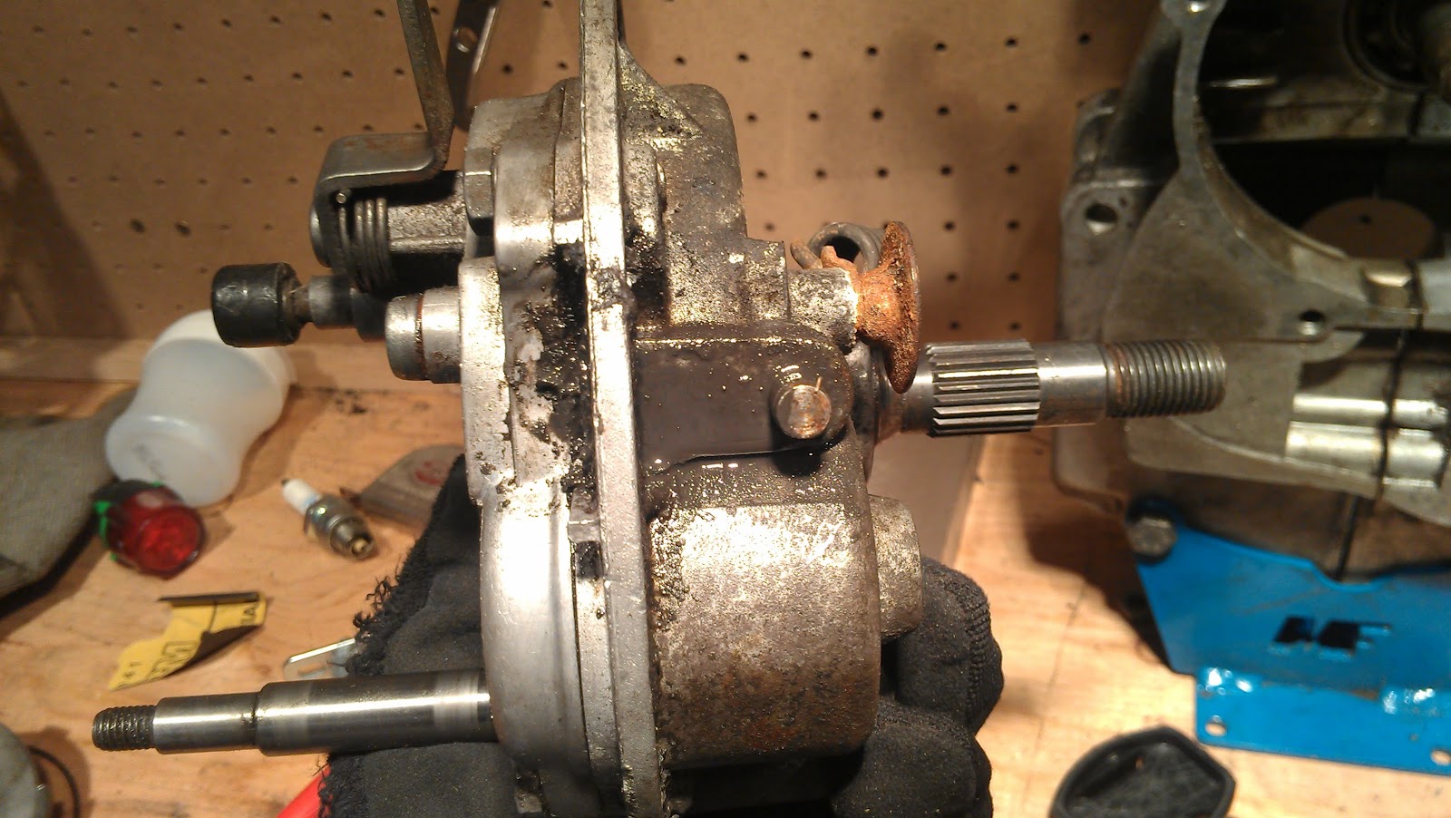 Last fall I flushed the tranny fluid in the Ciao and when I refilled it, I somehow got a bunch of oil in the rear hub. There was NO way to stop. The back brake was completely useless. So i took it apart and cleaned it out!