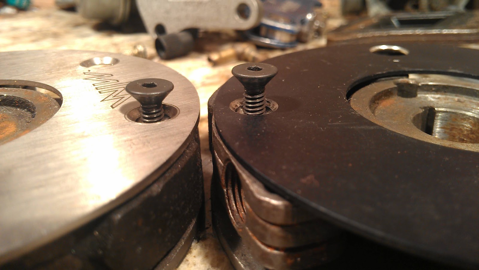 First step is to mill/grind down the posts just just about where the circlip sits. Go as low as you can, remember the shoes need to be able to rotate out so don’t go too far and squeeze them. You can safely go to just above the circlip groove.