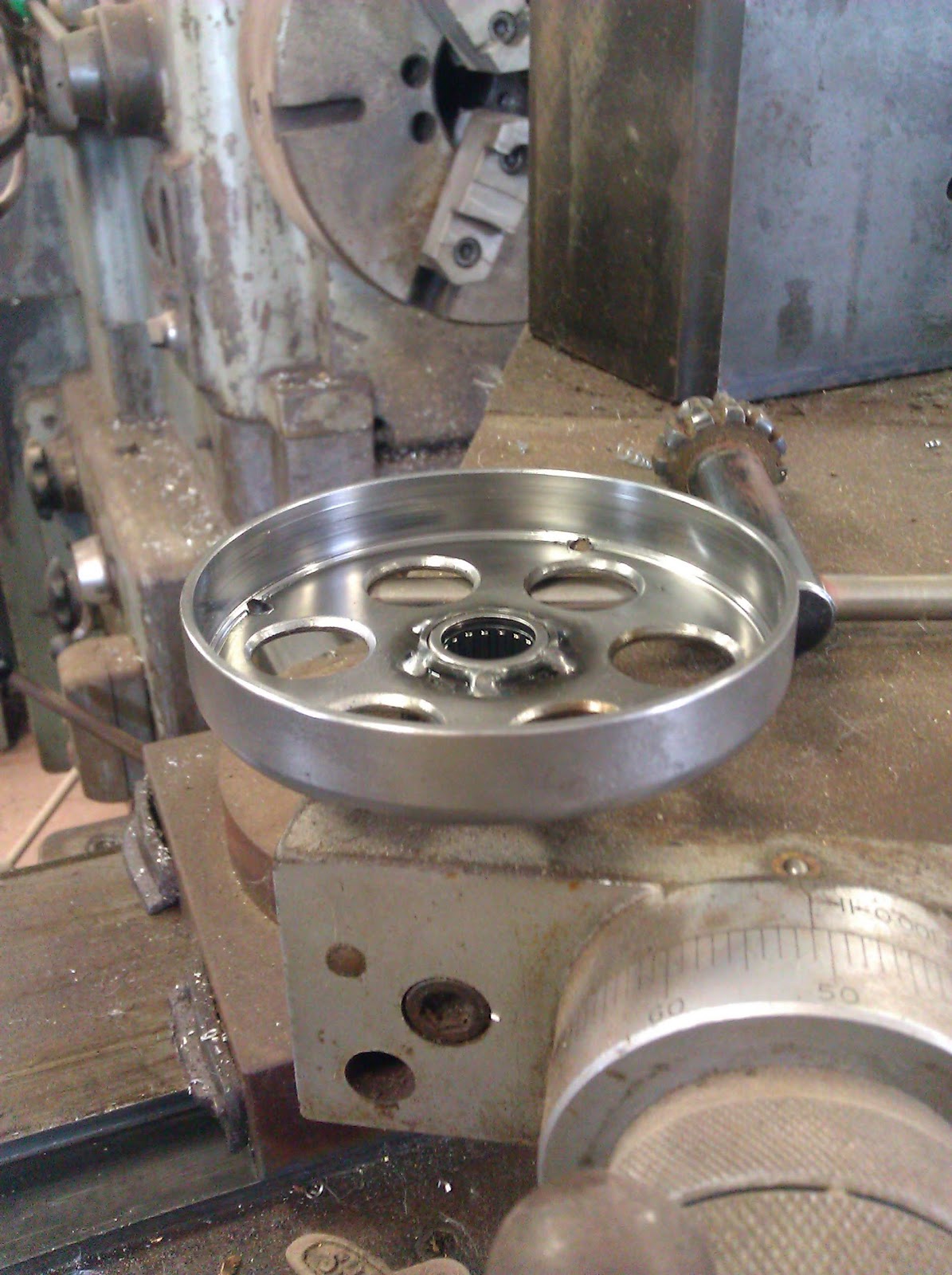 I cut the bell down so its only as deep as it needs to be to make contact with the clutch pads.