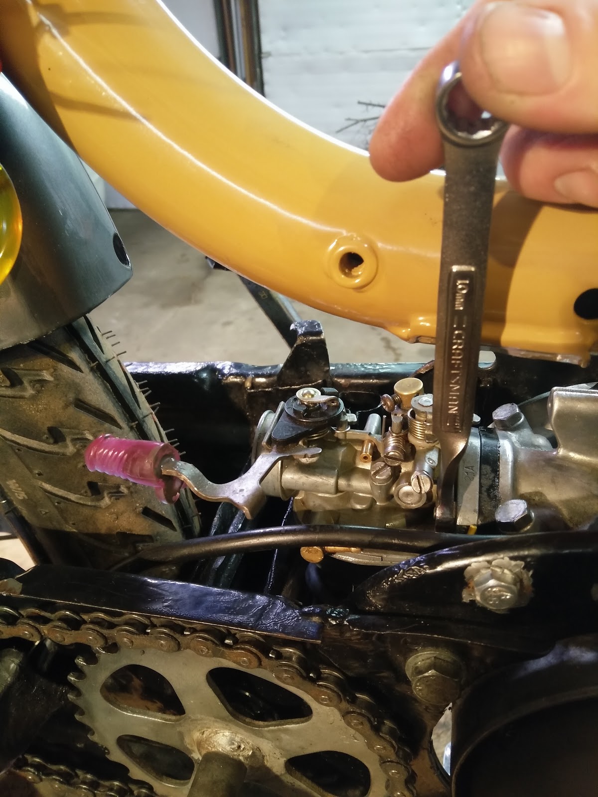 Made a custom twisted 10mm wrench for the carb nuts.