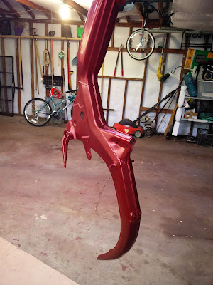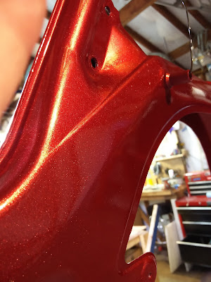 I primed it with 2 different color primers and sanded thru the top red coat to smooth out any blemishes and then reprimed it.