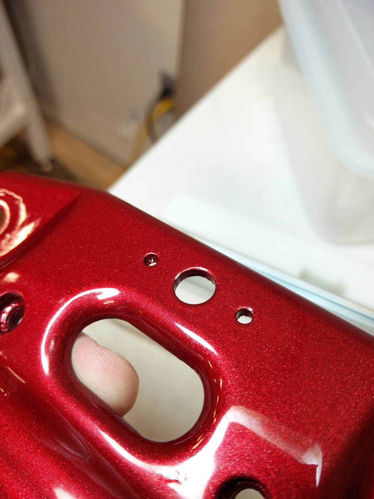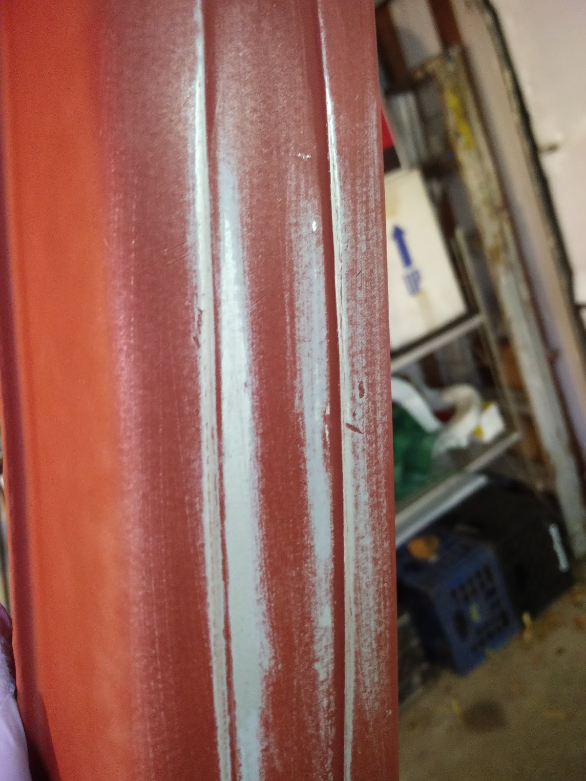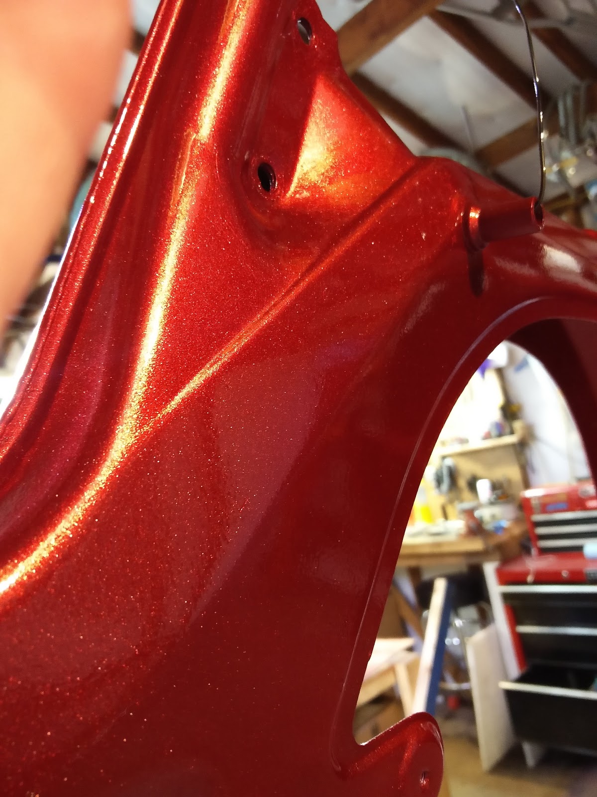 I primed it with 2 different color primers and sanded thru the top red coat to smooth out any blemishes and then reprimed it.