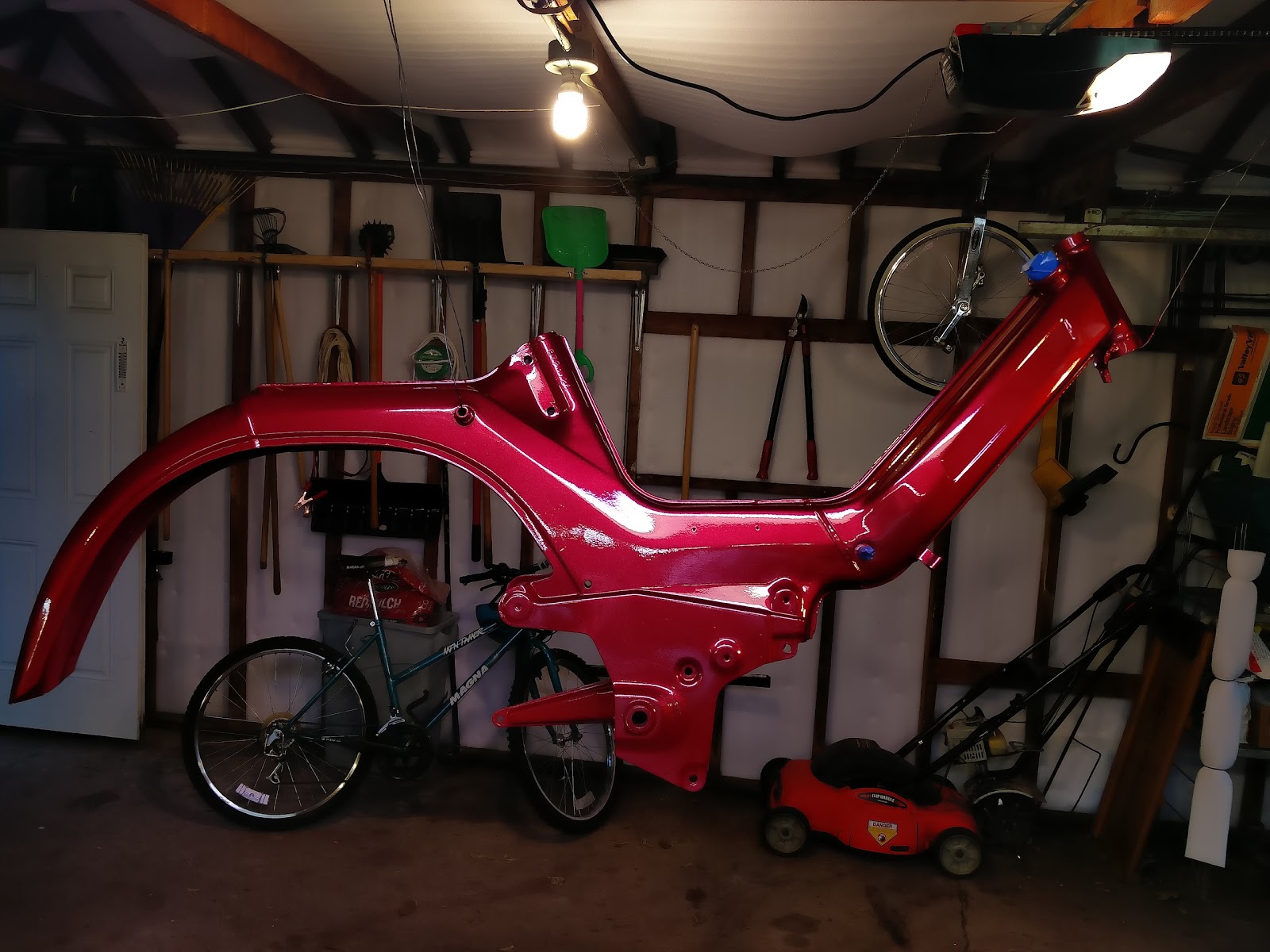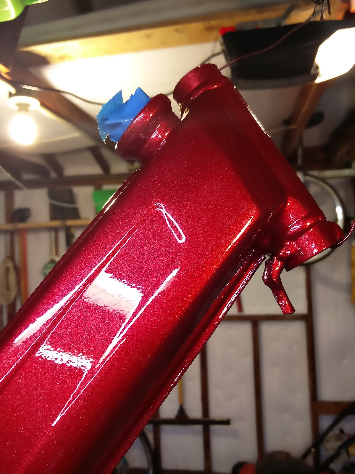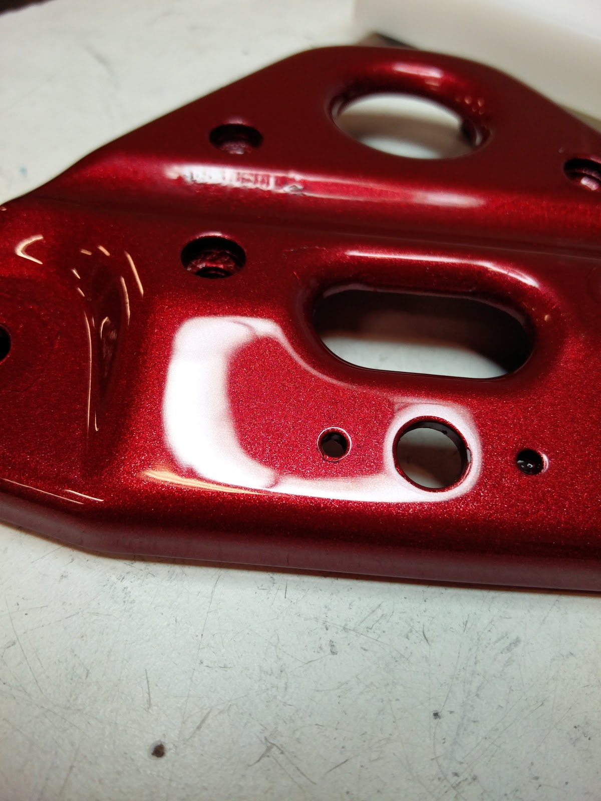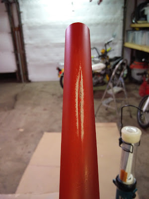 I primed it with 2 different color primers and sanded thru the top red coat to smooth out any blemishes and then reprimed it.