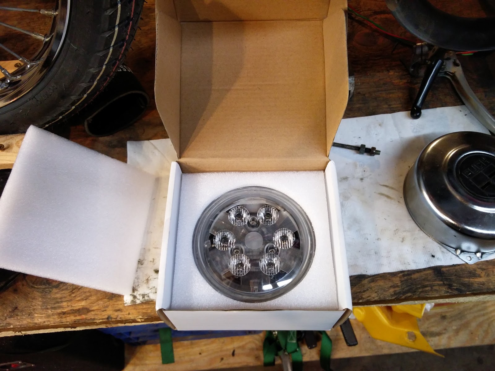 that makes Par 36 retro fits for tractors. Most mopeds also use par 36 beams so I thought I would try one out. It mounted just like stock and is super bright. They are 12v so you do need a 12v coil.