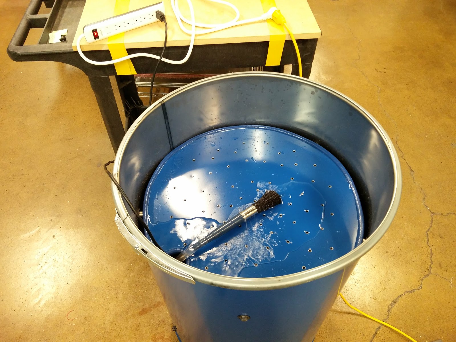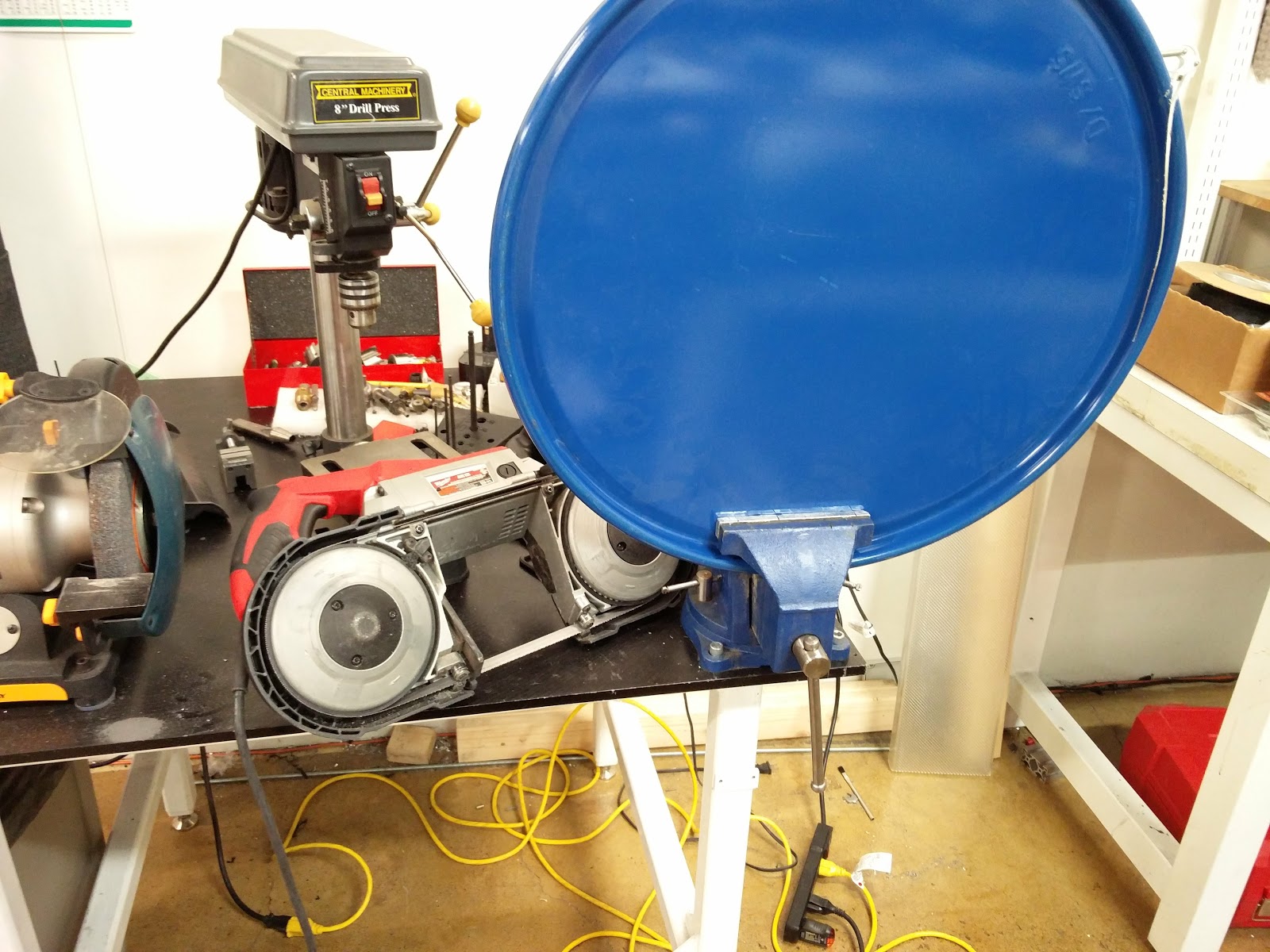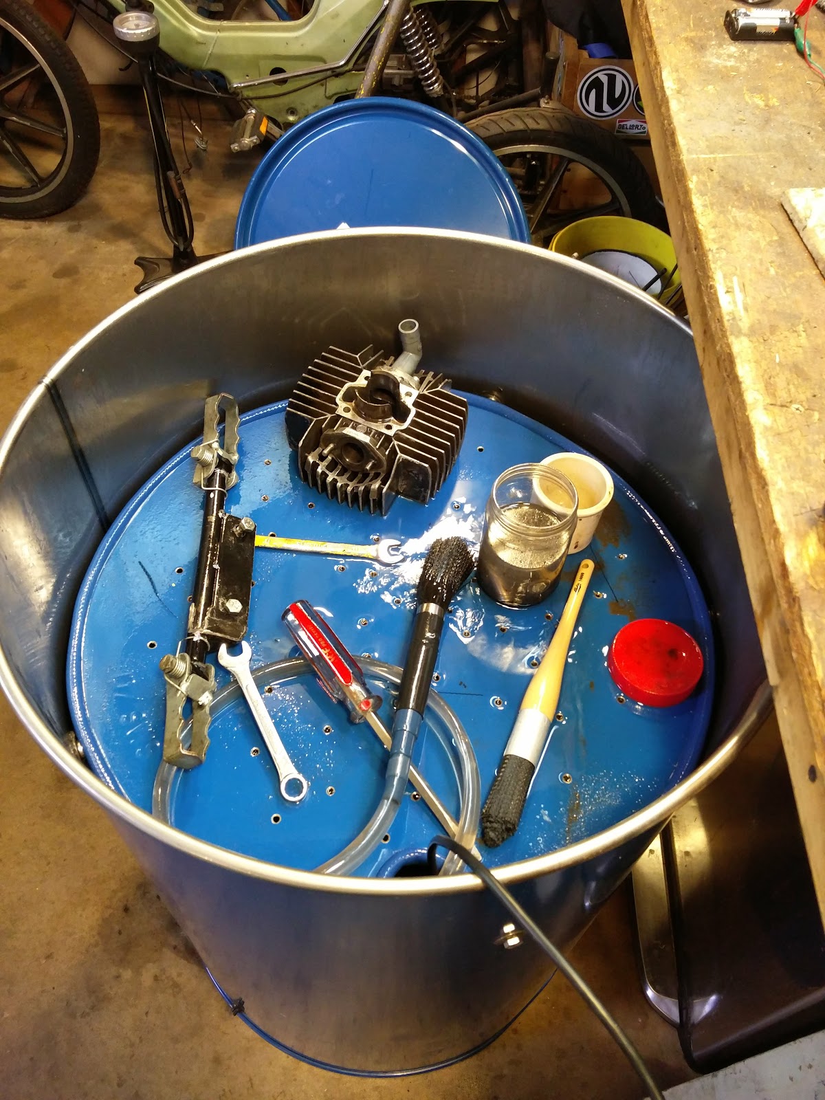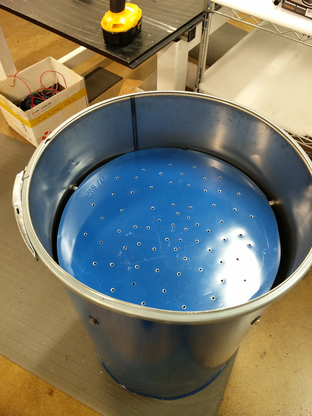 I didnt want to buy a parts cleaner so I decided to make one. I started with a 55 gal drum. I took the lid and cut it down to fit inside of the drum. Its going to be the shelf. I will use little spacers around the circumference of the drum to rest the shelf on.