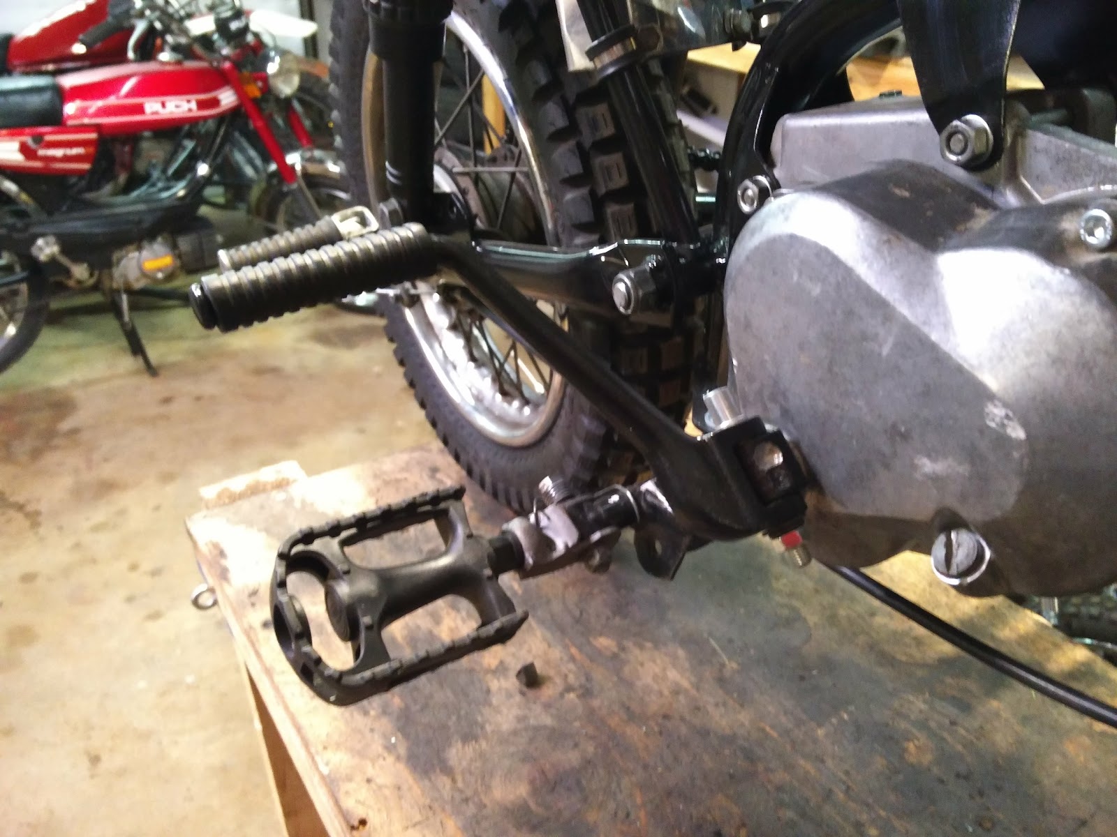 The magnum x e50 has a different angle for the kick start lever. So a regular kick start e50 lever will not work. I didn’t want to order an expansive one from Europe so I started looking at other levers. I found a Tomos lever and it was pretty close.