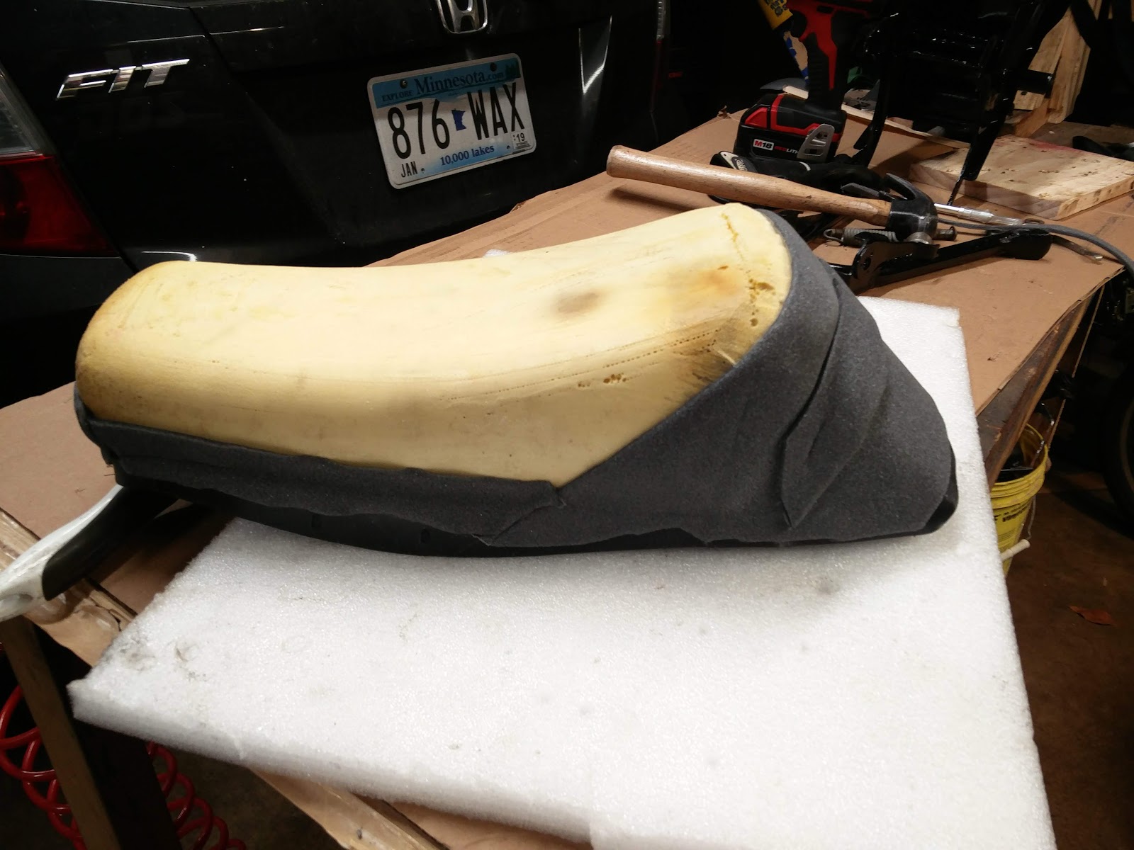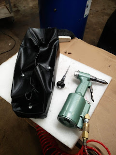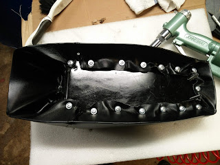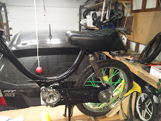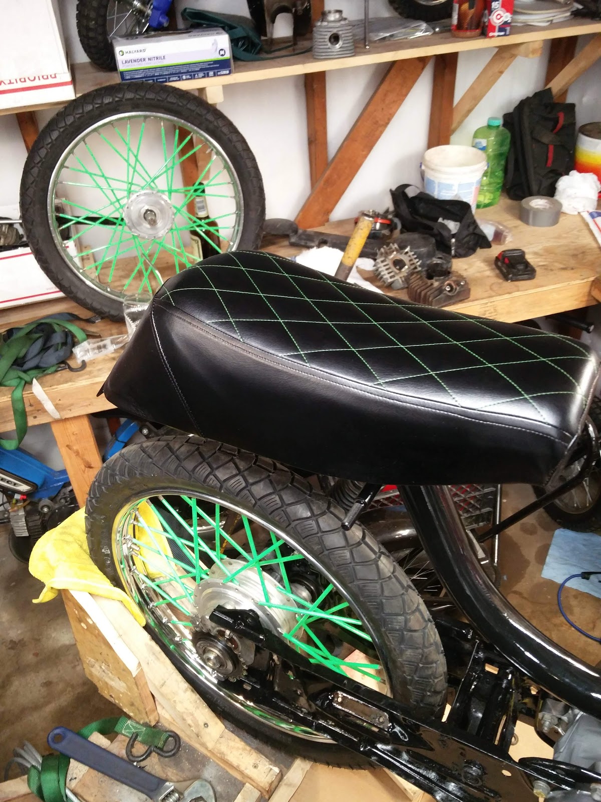 Been working on the Momster bike. Made a new seat cover, got spoke tubes, rebuilt the bottom end, painted the frame and subframe.