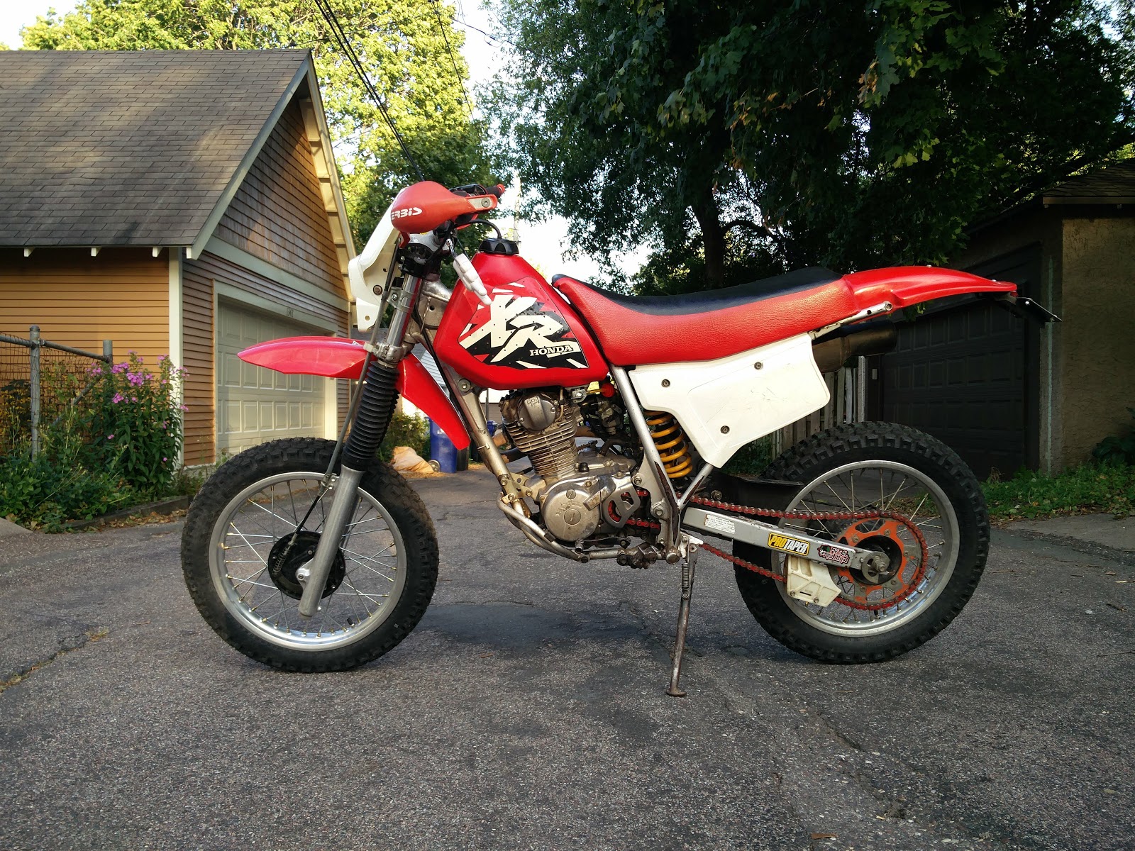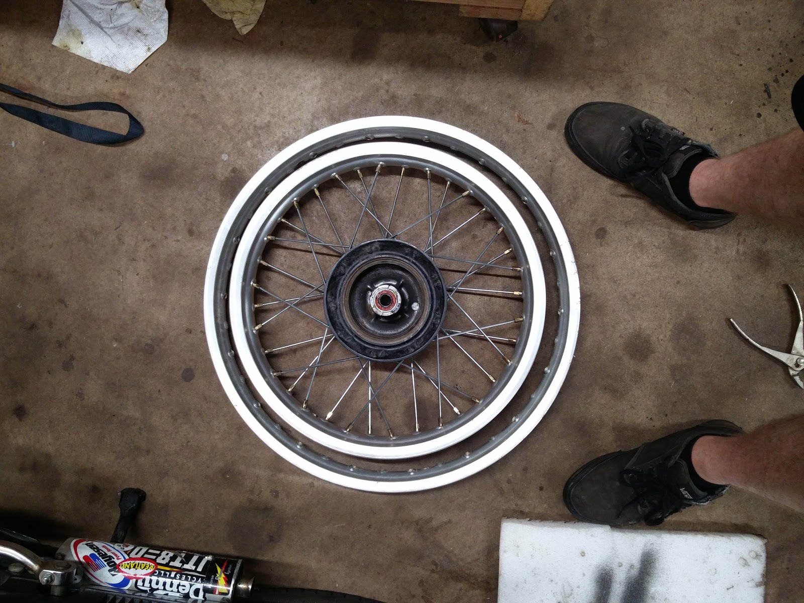 I picked up an xr200r a while ago with plans to make it a nice daily. I wanted a 17″ front end to match the rear. There were a lot of swap options but I ended up getting a matching rear rim with spokes on ebay hoping the spokes would match up to the front hub. It tuned out the hubs are the exact same so it was a direct swap.