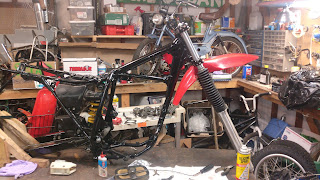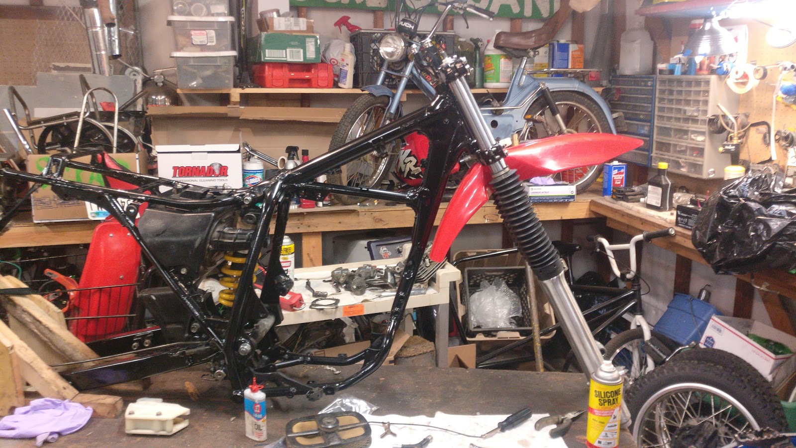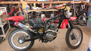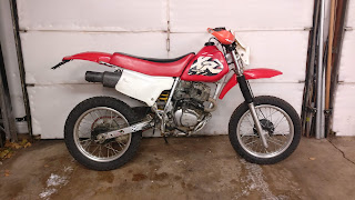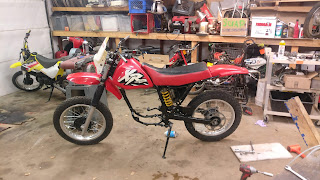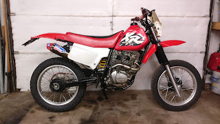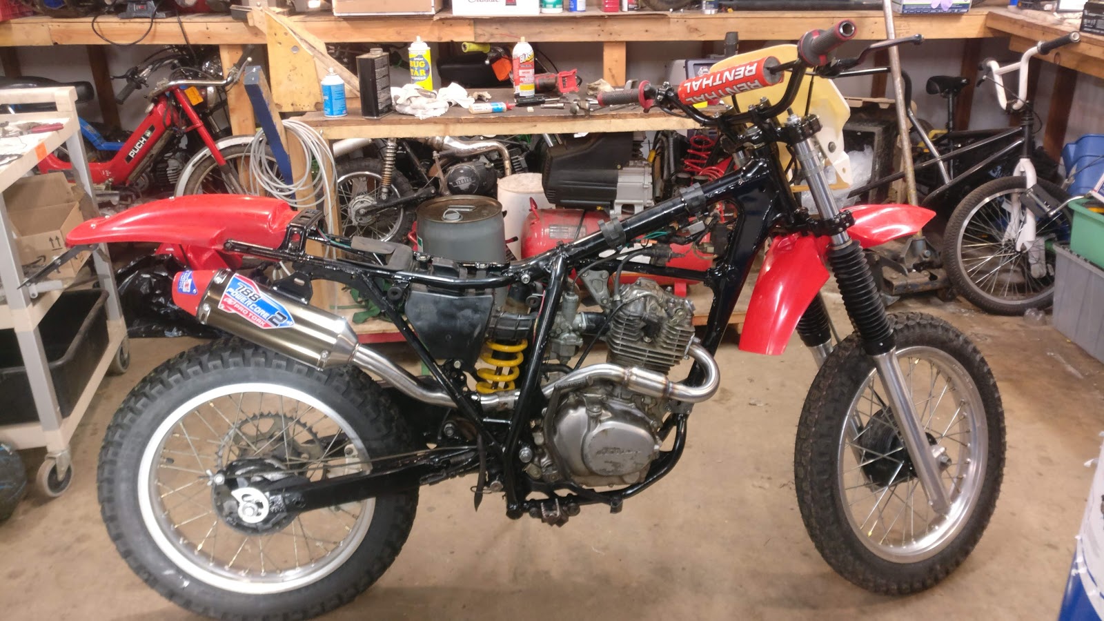 I took apart the XR200R and rebuilt the top end with new gaskets, timing chain, timing tensionors, and other odds n ends. I also painted the frame black and installed a new exhaust.