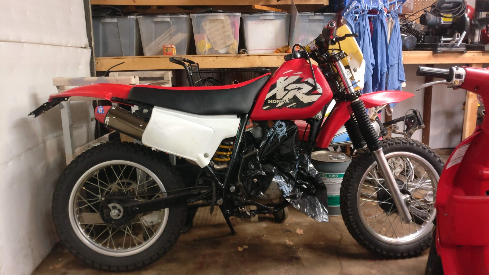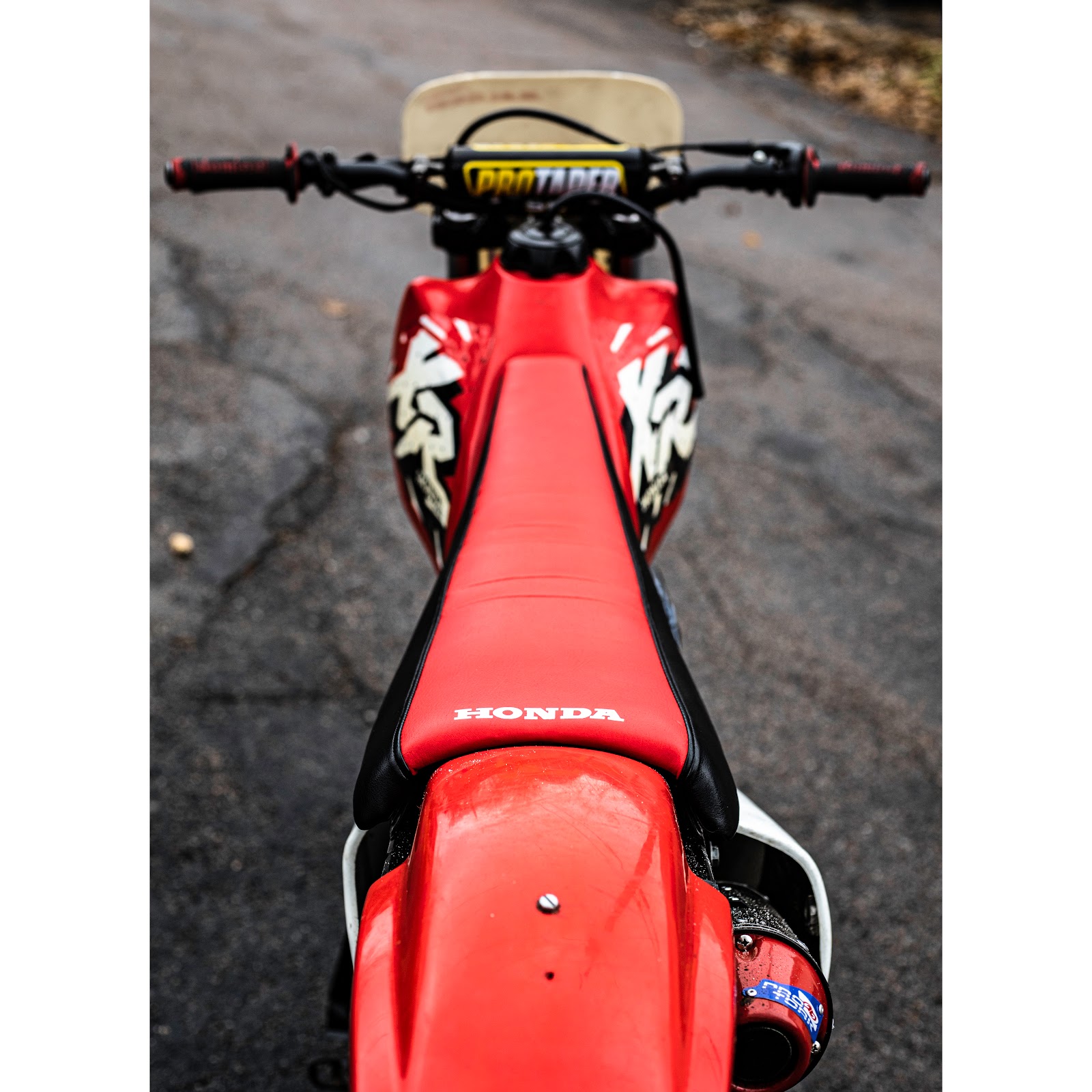 I decided to redo the xr200r seat again. I took the seat cover off and shaved the foam down with an angle grinder and flap disc. I made the read smaller so it would be more flush with the rear fender. For the seat cover, I used an crf cover for the center strip and sewed black to the sides.