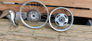 Frame was spray painted. Rims were spray painted. Brake pads and brake lines were shot. Crank bearings and seals are shot.
