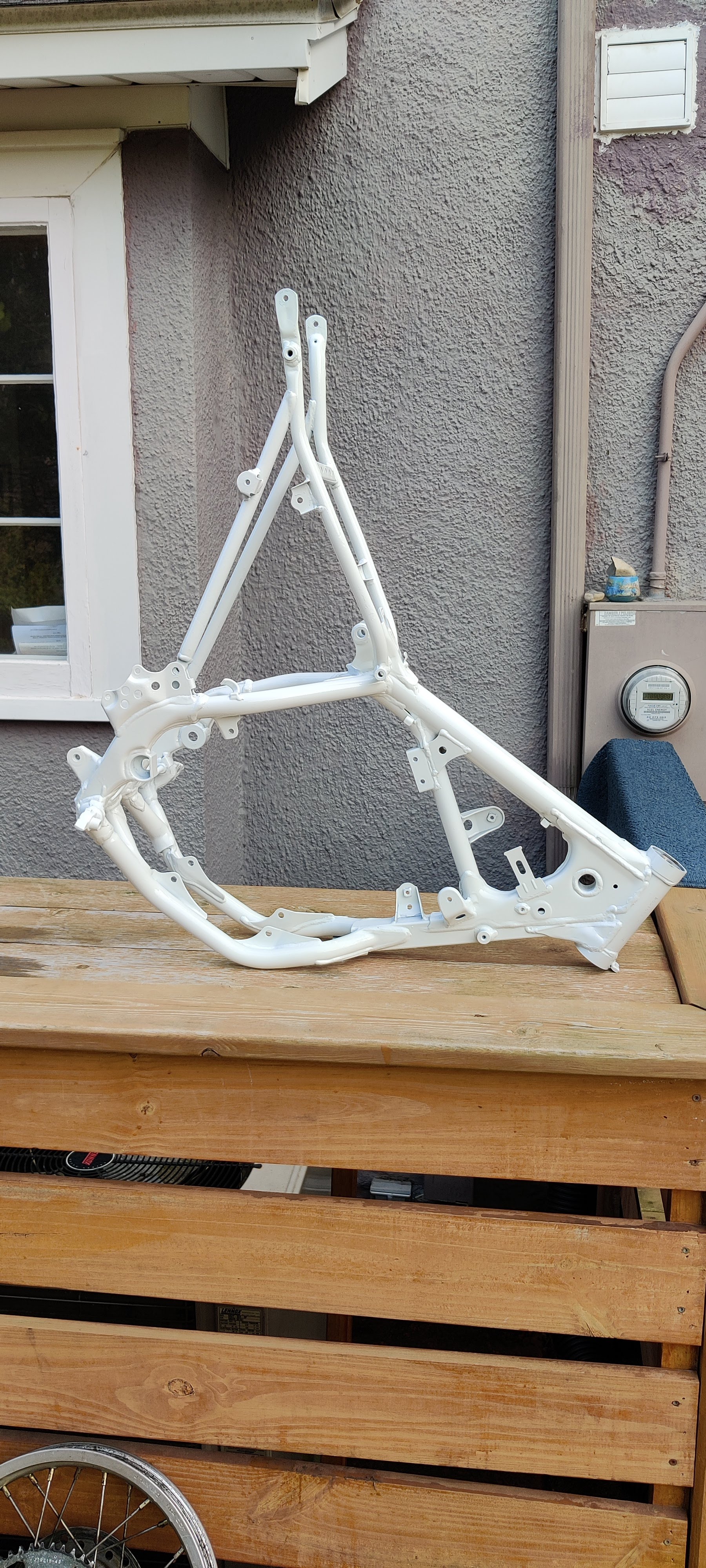 I started by stripping it down to the frame and repainting the frame white. I used 2 part urethane automotive paint.