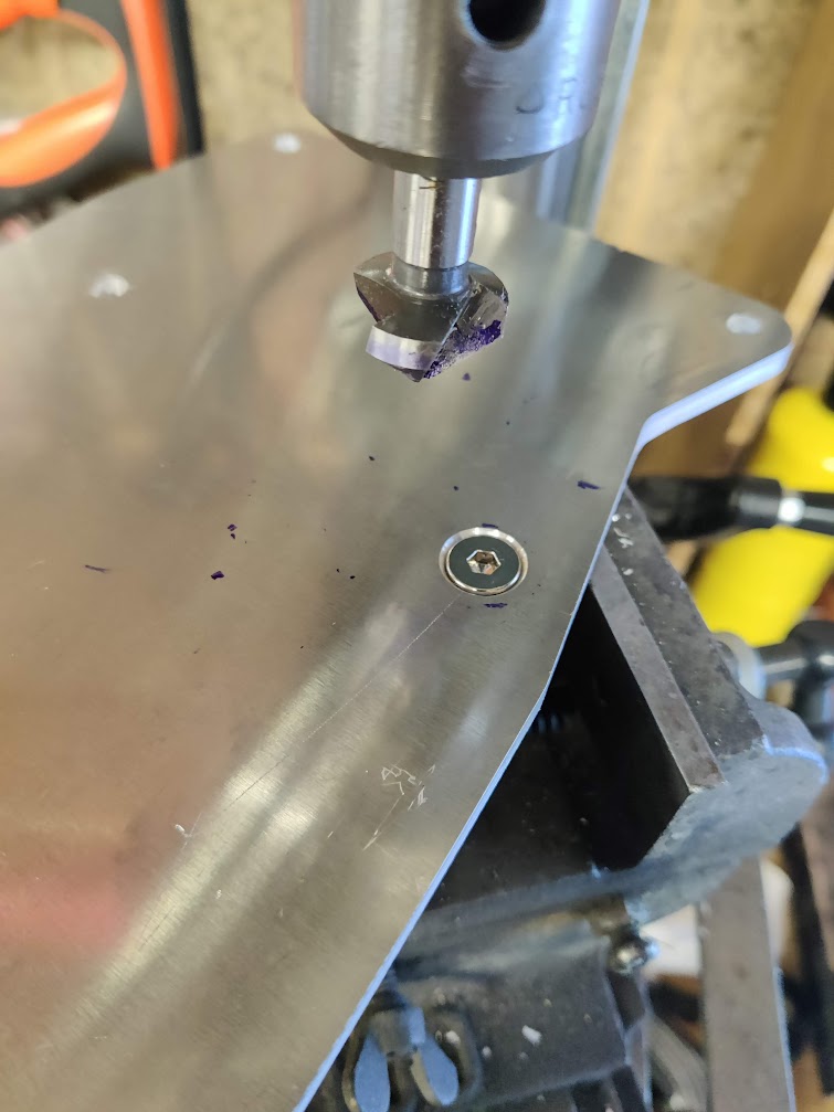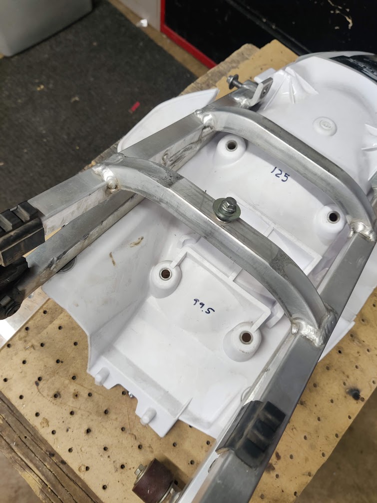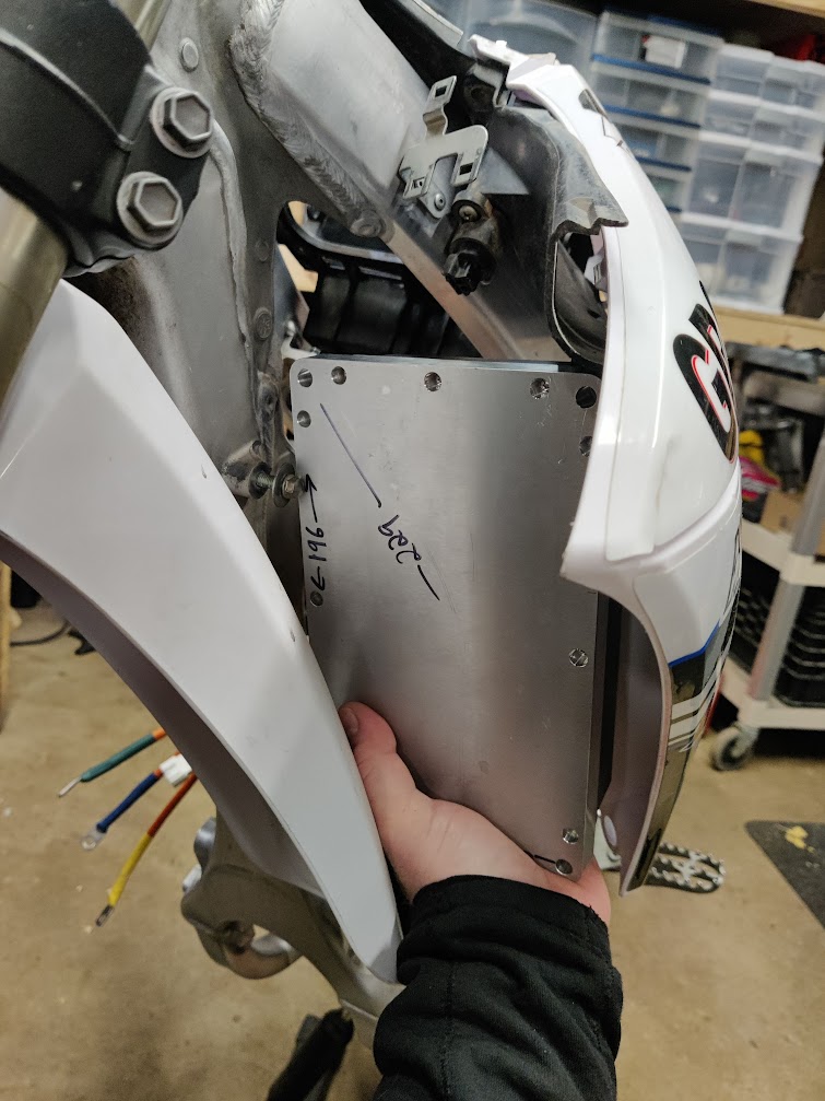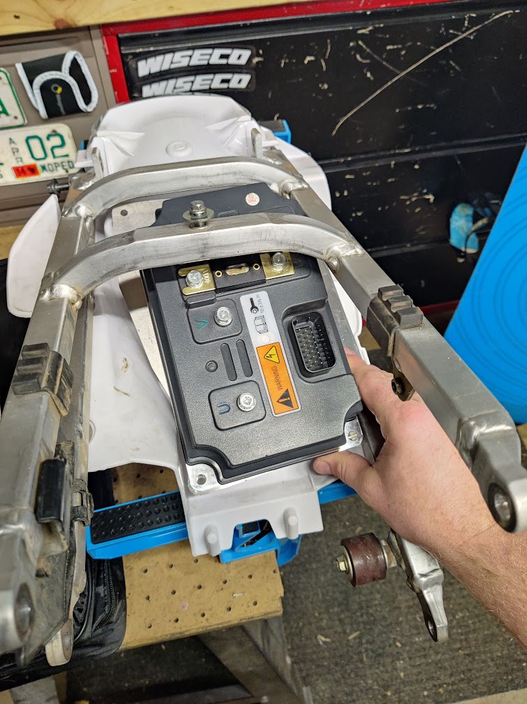 Then I started mounting the controller. I am using a Votol EM 260 and I think the easiest mount is to mount it to the rear fender using an adaptor plate. I made the plate out of cardboard and then traced it and sent it off to Send Cut Sent to have it made from 1/4 aluminum.