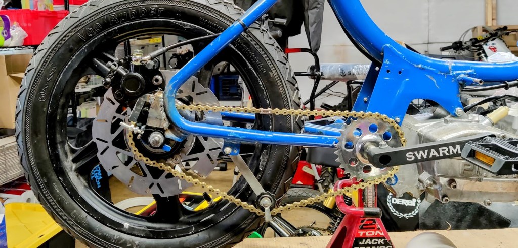 I have been converting my rigid Puch Swinger to full disk brakes. I finally finished and took it for the first test ride. Since it doesnt have the motor its not a Mo-Ped. It is currently just a PED. I used this caliper and left have brake lever. I did order…